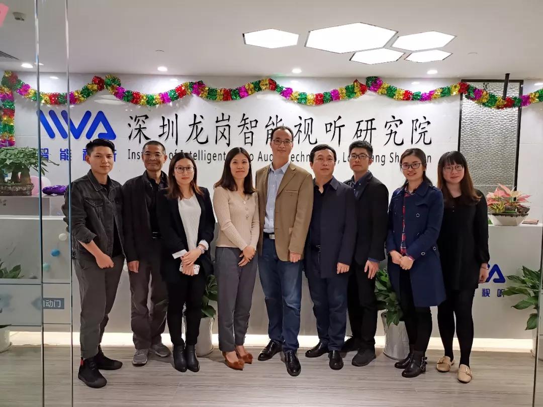 2018年11月27日下午,我会秘书处在简洁秘书长的带领下走访参观深圳龙岗智能视听研究院。研究院安欣赏副院长、肖铁军部长对秘书处的到来表示欢迎,秘书处一行与研究院进行了深入的交流互动。